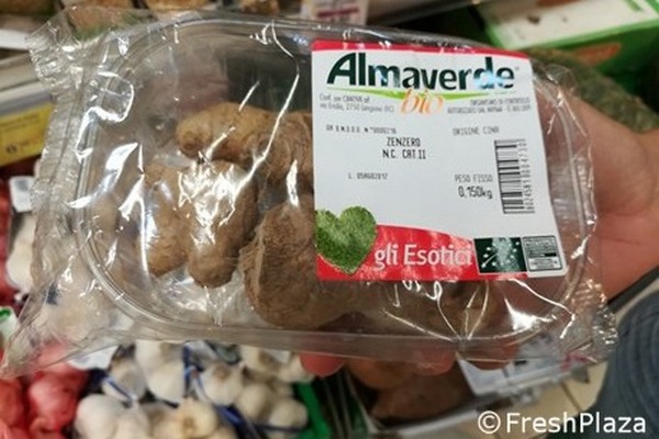 Almaverde Bio 的主管 Paolo Pari 说:"我们在中国或南美购买生姜,这取决于产季。根据国际法规,这些生姜在意大利和原产国都经过有机认证。"