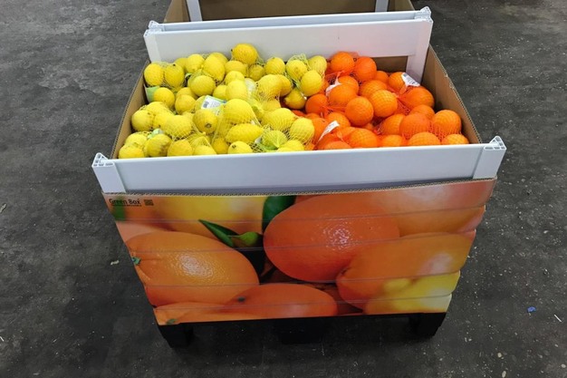 柑橘类水果在 Greenbox 展示架上:基本尺寸相当于半个欧洲托盘,根据应用情况,可以设计成不同的高度,50、70和100厘米。