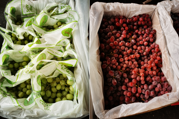 左:澳洲甜地球青提;右:澳洲无籽红提
