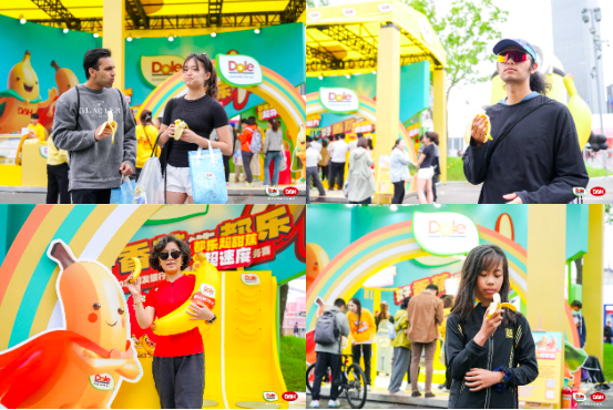 赛前体博会上,都乐展台带来充满趣味的"超速度""超能力""超开心"挑战和互动,让跑友们抢先一步体验超能燃力时刻,以最佳状态迎接即将到来的马拉松赛事。高品质、好口味的都乐超甜蕉、黄金菠萝、蓝莓、榴莲、甜玉米、DAH大蕉王等十余款最具代表性的明星果蔬悉数亮相。健康营养充能助力选手赛出好成绩,都乐阳光果蔬为各位热爱运动的跑友们保驾护航。