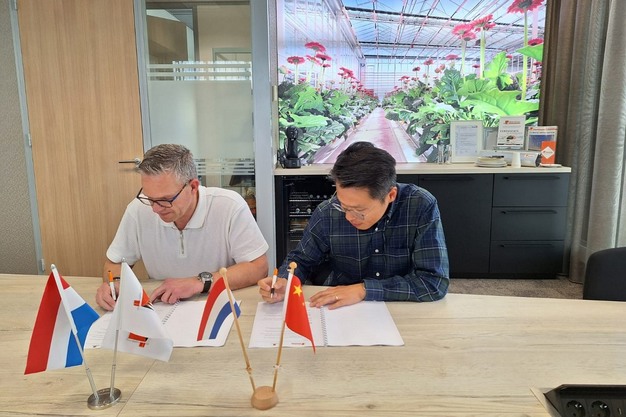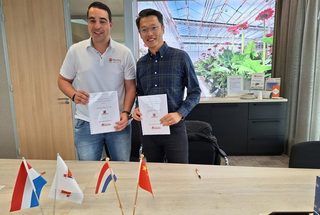 上周四(5月9日),Dan Xu和Ruben Kalkman签署了一项10公顷温室项目的启动合同。在Ms. Fang Wang(HortiPolaris)、Mr. Yuchon Chen(HortiPolaris)、Ms. Kangni Liu(HortiPolaris)、Rick van den Ende(Bom Group)和Rob de Wit(Bom Group)的监督下,这两家公司承诺将在中国合作更多项目。