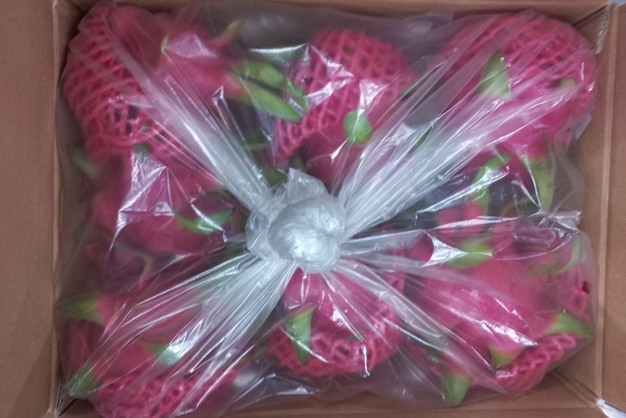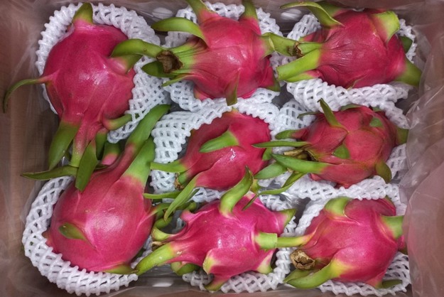 由于越南拥有现代化的种植技术,火龙果可以全年种植。"火龙果的生长季节非常好。我们供应两种不同品种的火龙果,白火龙果和红火龙果。火龙果每盒 6/9 个(4.5 千克-5 千克/盒)。