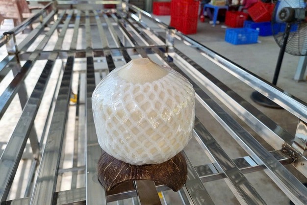 "椰子的选择极为重要,需要专业技术人员选择最佳的椰子进行剃须。如果椰子挑选不当,在切割和剃毛过程中会有很大风险,可能导致椰子开裂。我们只选择符合出口标准的椰子"。