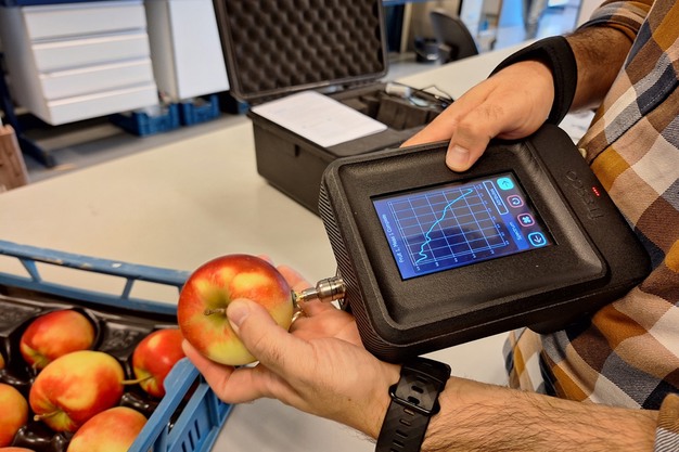 手持设备和分拣线集成都有其用途。"在果园里,你可以使用手持设备来决定采摘哪些水果。到达鹿特丹后,可以决定水果成熟的时间。在包装厂,可以根据成熟度对批次水果进行分拣,从而减少食物浪费,提高效率,让客户满意。"