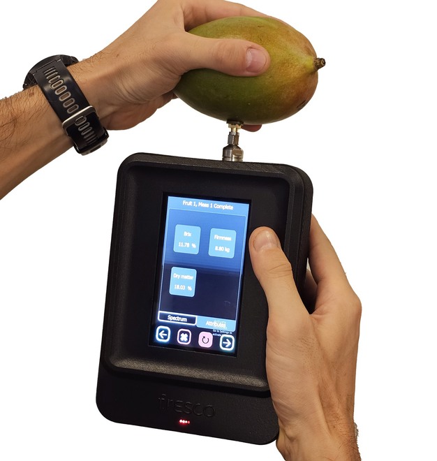 使用红外摄像机检查水果的内部质量现已司空见惯。使用手持式设备的情况则较少,这种技术很快就会在分拣线上使用。"牛油果仍然需要切开来检查成熟度和质量。Vertigo Technologies 公司首席执行官兼创始人 Luca Galatro 说。"而且,使用这种手持设备的人不会有健康风险,至少不会比用手机打电话的人有健康风险。"