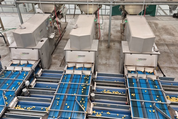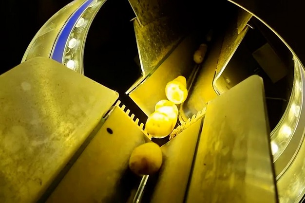 Visar Sorting 以其创新的分级机而闻名。它们利用两条传送带之间的短暂飞行和 LED 照明来提供恒定的背景参考,从而生成高分辨率图像并对每个产品进行详细的 360° 评估。该技术目前还无法透视马铃薯和胡萝卜皮,主要关注外部品质特征。然而,内部质量测量应该在五年内成为可能。该公司已经开发了用于种薯行业的机器。这些符合荷兰检验总局的标准,该机构负责监督繁殖材料的质量和健康状况。