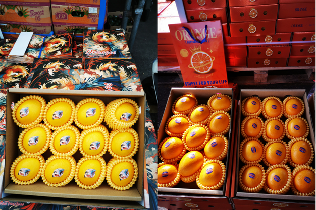 水果市场上的各式礼盒包装正在增加,设计精美,为下个月到来的中秋节做准备。其中,以苹果及橙类的中秋礼盒装最多,而时令果品如无籽石榴、秋月梨、及新疆西梅等,在初到货时已有礼盒装规格。