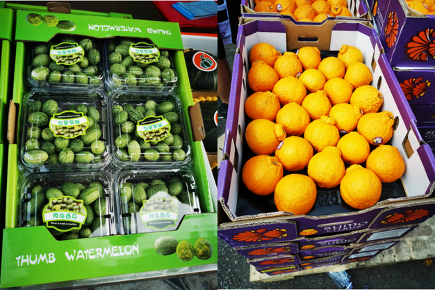 左:秘鲁蓝莓;右:中国产新疆西梅