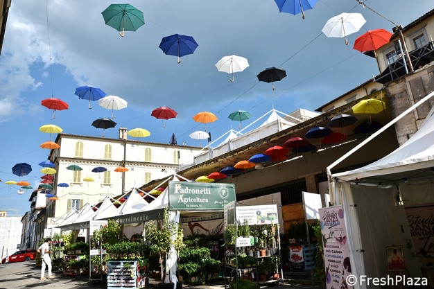 "参加 Rieti 展会非常重要,因为有很多充满好奇和热情的人。今年,我们在整条街上设置了悬挂彩色雨伞的艺术装置。"