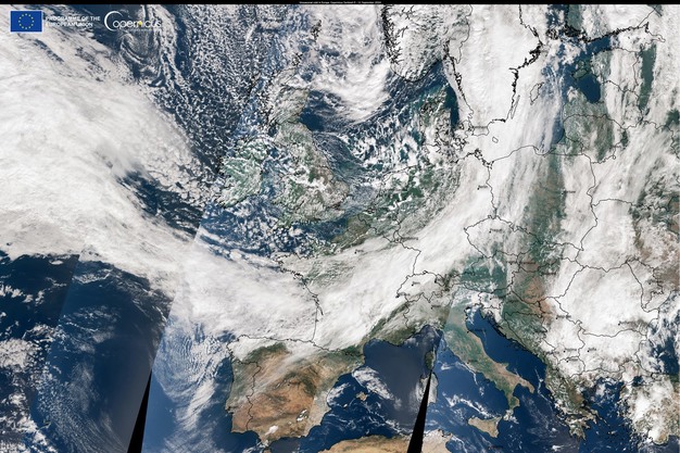 这张 Copernicus Sentinel-3 拍摄于 2024 年 9 月 11 日的图像显示,一股冷锋正在逼近法国、比利时和荷兰海岸,准备在中欧地区大举登陆。