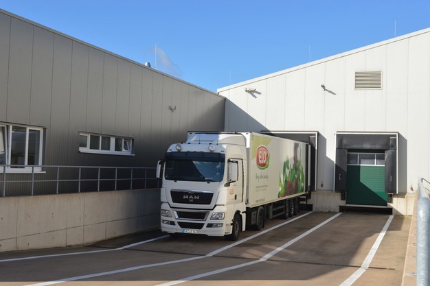 ELO eG 的货车停靠在 Lower Saxony 州 Goldenstedt 的现代化公司所在地