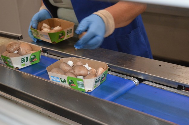 根据市场要求和客户愿望,有机蘑菇和传统栽培蘑菇在采收后都会立即装入纸板或塑料托盘中。