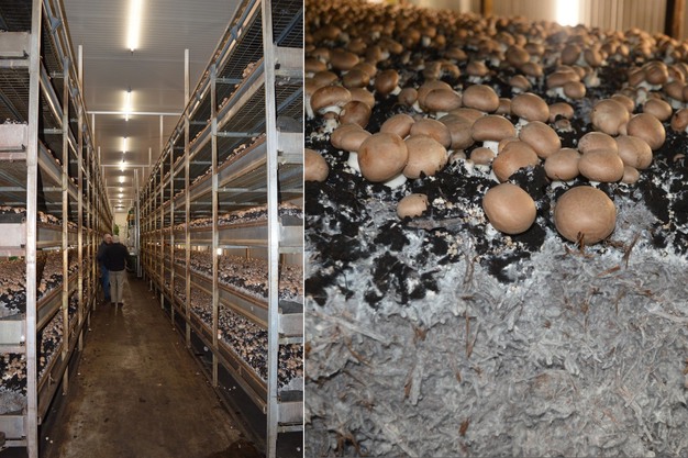 深入了解有机蘑菇种植。该农场共有十个用于有机生产的育种室。