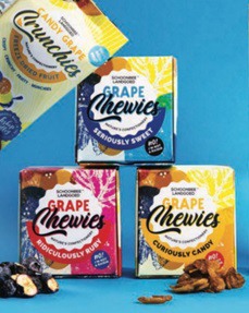 右图:Grape Chewies 系列由无核 Sable®、Crimson 和 Cotton Candy™ 脱水制成。