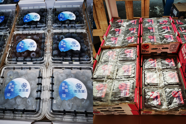 左:云南蓝莓;右:秘鲁蓝莓