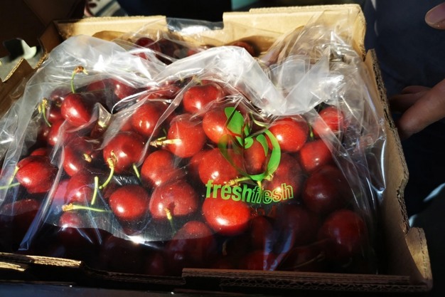 智利Santina车厘子已到货,包括J-3J规格,价格根据不同品牌及到货情况有所差异,部分到货硬度略有不足。商户表示近期市场整体走货未如理想,车厘子价格比上周下调,目前2J规格销售相对较好,因价格较为适中。