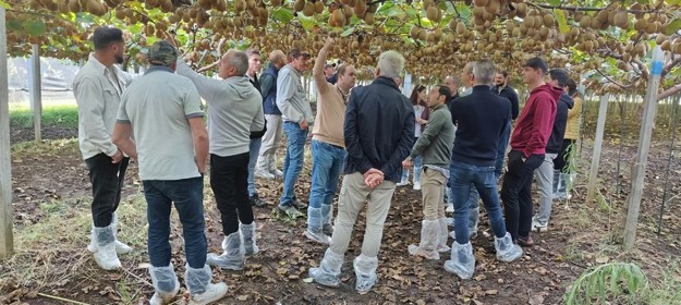 Kevin 是RK Grower亚洲市场的负责人,"我最近在10月份的Kikoka开放日参观了位于意大利,拉蒂纳的一个果园。根据农场主介绍,这个郁郁葱葱的奇异果果园,几年前因为"Moria",最后只剩下了光秃秃的奇异果干枝。然而,通过创新的农业解决方案,这个果园现在又换发重新了,"Kevin介绍说,"当时,通过砍伐感染了"Moria"的海沃德绿色奇异果植株,并将Kikoka黄金奇异果幼苗嫁接在强健的"Bounty"砧木上,这个果园重获新生。如今,果园里再次充满了生机勃勃的Kikoka黄金奇异果果实。果园主对目前的成果感到非常满意,他称赞了Kikoka这种新品种奇异果的果实大小适宜、形状和品质都非常好。这一显著的转变为意大利奇异果产业带来了新的希望。"