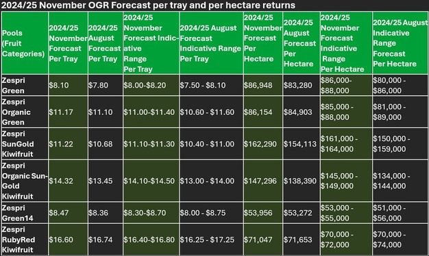 近期,佳沛发布了2024/25年度11月份的预测,与8月份的预测相比,几乎所有水果类别的预测收益率都有所上升。