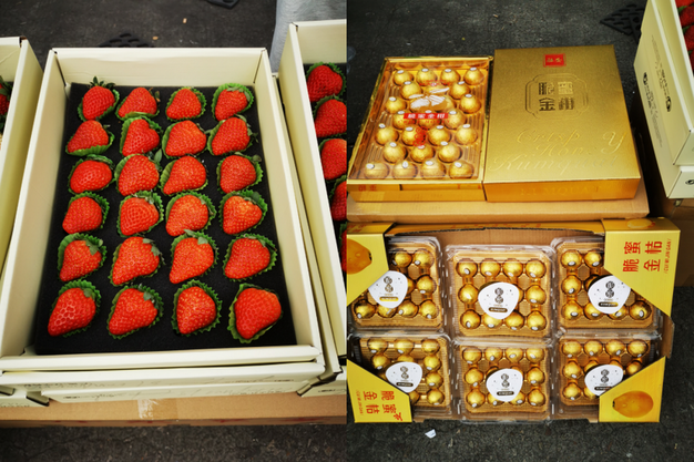 左:丹东草莓;右:广西金桔
