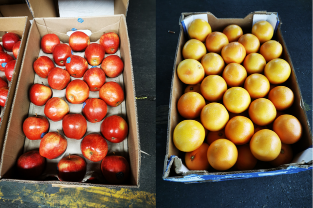 左:法国苹果;右:南非西柚