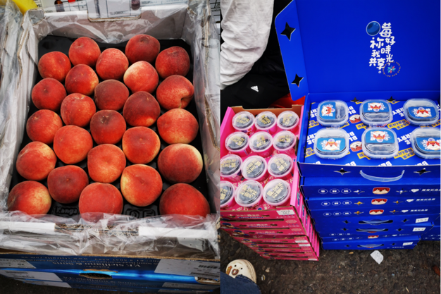 左:澳洲毛桃;右:国产蓝莓小杯装
