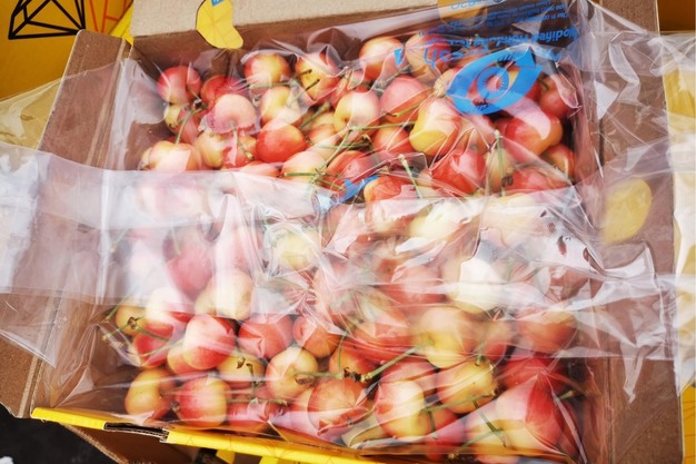 Rainier品种本周到货量增加,价格低于往年同期。在同等价位的批次中,色泽及光泽度也有所分别。3J尺寸2 x 2.5kg规格约售人民币七百多元,2.5kg规格约售四百多元,高于常规品种约¥80-¥100,而该品种往年售价分别在人民币八百元及五百元以上。商户表示,目前到货硬度较好,小盒装(2.2kg,2.5kg)更受欢迎。