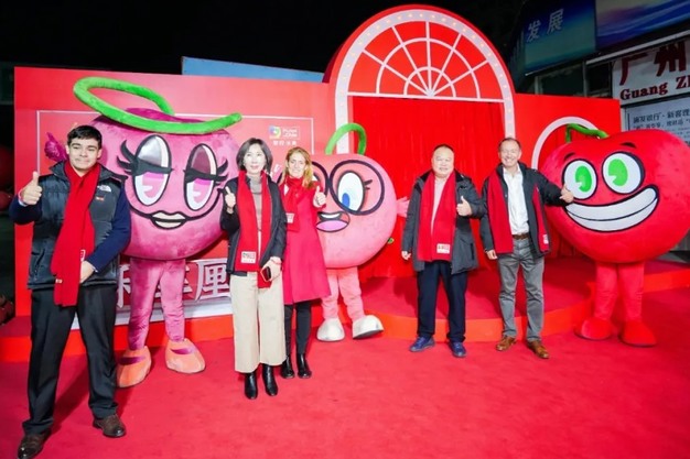 12月8日,智利水果出口商协会(Frutas de Chile)在广州江秾汇批发市场隆重举办首艘智利车厘子直航快船到货仪式,标志着2024/25产季智利车厘子海运季正式"甜蜜"开启!智利水果出口商协会会长伊万·马凡比奥(Ivan Marambio)、协会下属智利车厘子委员会执行总监克劳迪娅·索勒(Claudia Soler)、广州市江秾汇市场服务管理有限公司总经理郑南燊和副总经理赵智,以及智利驻广州商务领事Gonzalo Rubilar共同出席仪式,迎接首艘智利车厘子快船的到来。