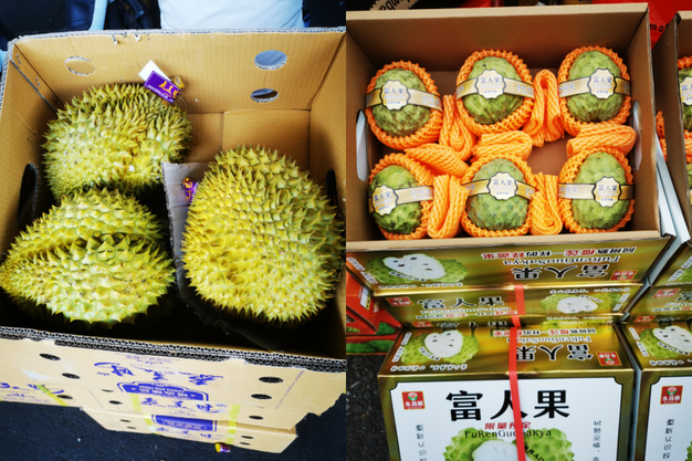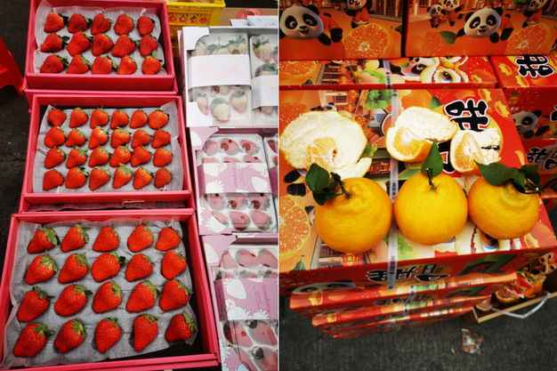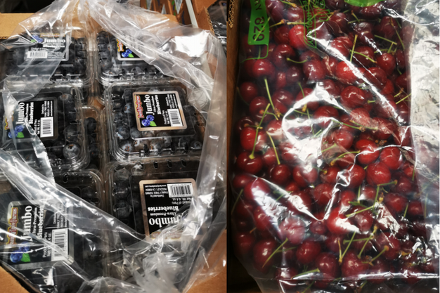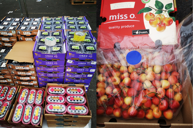 左:云南蓝莓;右:智利空运车厘子(Rainier品种)