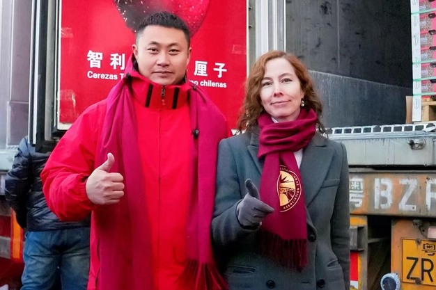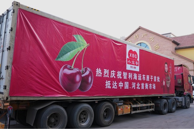 智利海运车厘子于12月10日抵达中国河北高碑店首衡批发市场,并举行开柜仪式。
