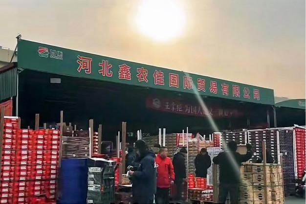 "当天早上大约开8-10个货柜,客商采购气氛积极,当时一半以上的货量被预订。"来自"小宝哥"的孟超先生谈道。"高碑店市场辐射北方区域。车厘子在北方市场十分受欢迎,尤其深红色品种。因当地气温较低,利于深红色车厘子的储存,货架期可相对较长。"