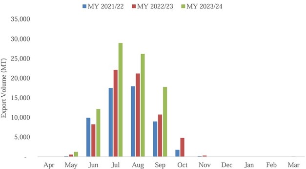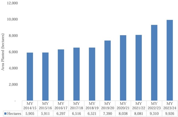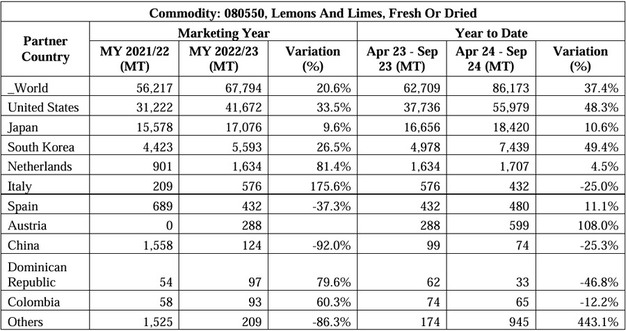 在 2024/25 年度,由于种植面积增加,并假设产量正常,Post 估计柠檬产量将增长 2.6%,达到 19.7 万公吨。预计 2024/25 年度柠檬种植面积将达到 10,400 公顷,比 2023/24 年度增长 4.8%。