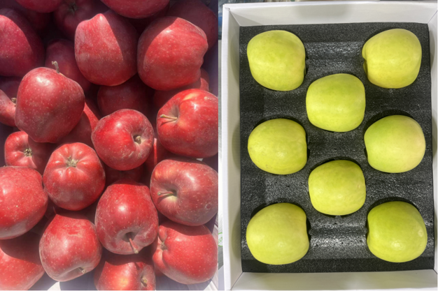 左:静宁富士片红苹果 ;右:静宁富士条红苹果