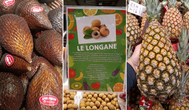 沙拉、龙眼和瓶装菠萝 / © E.Leclerc Drumettaz