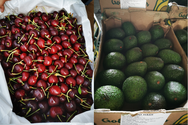 左:美国华盛顿车厘子;右:秘鲁牛油果