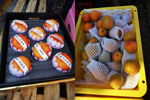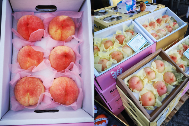 中国产的当季水果中,较多商户销售的果品包括大荔冬枣、提子、新疆吊干杏、水蜜桃、李子等。据向商户了解,在国产水果当中,口感好且精品礼盒装的水蜜桃销售最为顺畅,如四川水蜜桃及阳山水蜜桃。阳山水蜜桃今年产量较少,价格较往年上升,8只一盒的礼盒包装约售¥70-¥90/盒。