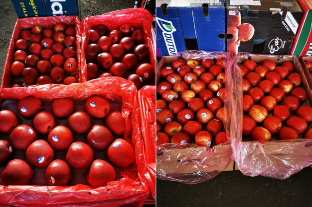 左:新西兰红玫瑰苹果;右:南非加力果