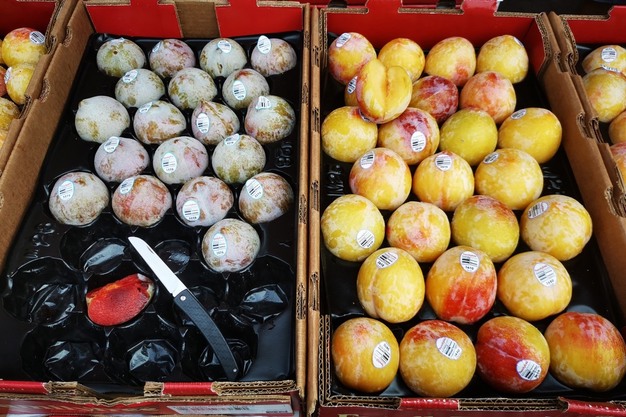 美国李子在售品种包括鳄鱼蛋、火龙蛋、夜玫瑰等,商户表示售价与以往接近,整体走货比较缓慢,夜玫瑰相对较好。