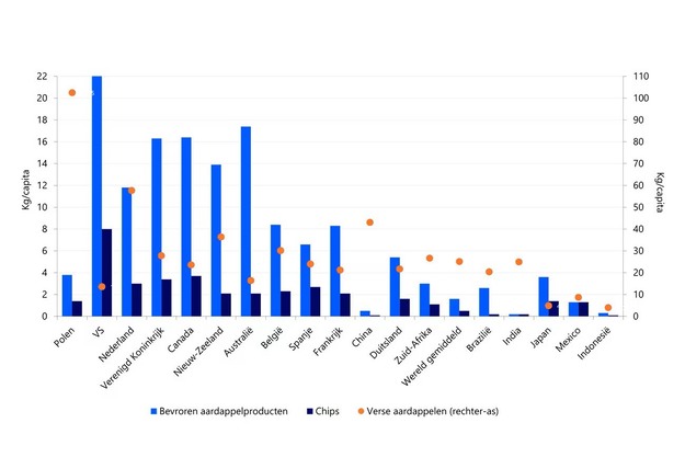 全球马铃薯市场正在发生变化,尤其是在冷冻马铃薯制品领域。2019 年至 2024 年间,薯条和其他加工马铃薯制品的国际贸易急剧增长。在此期间,中国和印度等快速增长的市场已从冷冻加工马铃薯制品的净进口国发展成为净出口国。RaboResearch 分析师最近发布的《世界马铃薯地图》重点介绍了这些发展变化。