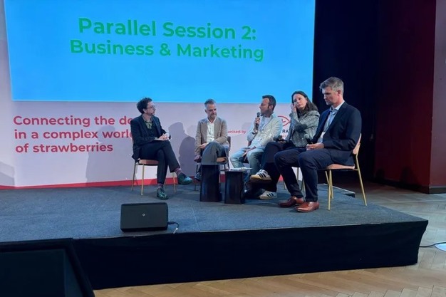 Tom Vanfraeyenhoven(Hashting Solutions)、Jan Engelen(Coöperatie Hoogstraten)、Marieke Appel(Driscoll's)和Bart De Langhe(KU Leuven)就品牌建设和市场营销展开了小组讨论,会上清晰地阐述了品牌与自有品牌如何共存,并各自发挥各自的作用:品牌提供体验和特色,自有品牌则提供数量和价格优势。只要注重质量、创造力并巧妙运用数字工具,即使资源有限,也能成功打造品牌。社交媒体和包装在品牌传播中发挥着重要作用,但仍需保持平衡。在价格压力下,增加产品价值仍然至关重要,例如将产品定位为零食或礼品。Curd Vanmarcke(Vergro)、Michiel Vermeiren(Coöperatie Hoogstraten)和 Joeri Beniest(Lidl Belgium)随后阐述了他们的战略合作伙伴关系及其优势,例如如何通过超市促销活动来应对生产过剩。