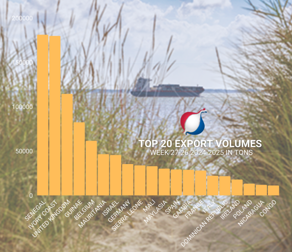 出口市场中塞内加尔以18.1万吨居首,科特迪瓦以17.7万吨(增长77.5%)紧随其后,英国虽保持第三但进口量下降14%。以色列表现抢眼,以71%增幅跃居第七位。