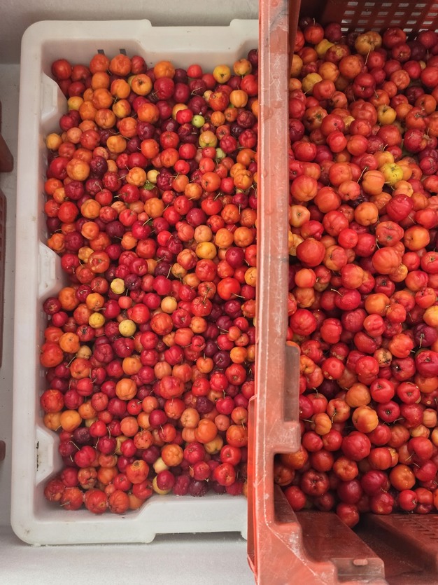 加工和冷冻在合作工厂进行,该工厂专门为 Adit 的生产配备了一条经过认证的有机生产线。"我们从 1,000 公斤新鲜针叶樱桃中,提取出约 750 公斤果肉,在 -30°C 下速冻,并在 -20°C 下储存。冷冻果肉装在 175 升的冷冻箱中运往欧洲,主要用于提高各种混合果汁中的维生素 C 含量。"