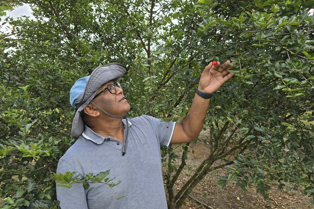在 Triple A Organic Farm,Adit Moensi 亲手种植所有针叶樱桃幼苗。在苏里南矿业繁荣时期,Adit 曾在 Suralco 工作。矿业繁荣时期结束后,他决定投身农业。"我坚信农业和园艺业能够在苏里南经济多元化发展中发挥关键作用,"他解释道。"针叶樱桃似乎非常适合,它是典型的苏里南水果,而且由于其维生素 C 含量极高,在欧洲和美国的需求旺盛。事实上,全球供应远远无法满足需求,"Triple A Organic Farm 的创始人兼推动者 Adit 说道。
