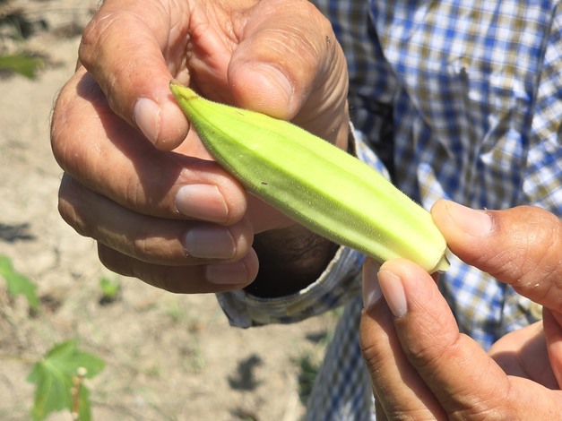 出口量最大的产品之一是秋葵。"它在荷兰、德国和英国非常受欢迎,"Bhies 说。"你知道一些快餐汉堡上的棕色外皮含有秋葵粉吗?我们在 20 公顷的土地上种植这种蔬菜。这是一个相当大的数字。要种植 10 公顷,我们八个人要花整整一周的时间。这就是我们现在寻找机械化种植方法的原因。种子从非洲经荷兰运来,两个月后开始收获,播种后持续九个月。"