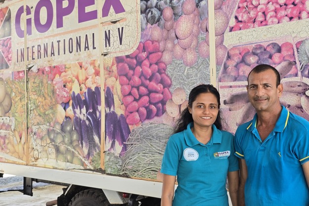 在 Saramacca 地区,在绿油油的田野和洒满阳光的温室中,Bhiesnoe Gopal 和他的妻子 Madhevi 从 1998 年起就开始经营种植和出口公司 Gopex。他们在约 80 英亩的土地上--部分露天,部分塑料大棚--种植了一系列令人印象深刻的水果和蔬菜。他们的产品在当地市场需求量很大,而且还通过空运销往欧洲,特别是散居在欧洲的苏里南人非常喜欢这些产品熟悉的味道。
