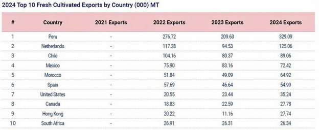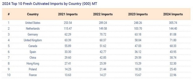 在进口方面,美国在 2024 年以 305 吨的进口量位居榜首,其次是荷兰、德国、英国、加拿大、西班牙和中国。鉴于美国政府宣布加征关税,Steta 呼吁各方关注,并表示在未来几个月内,开拓新市场和制定缓解影响的策略将至关重要。