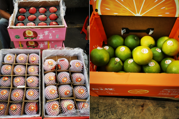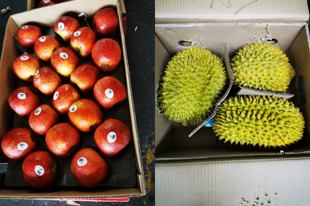 左:进口苹果;右:越南金枕榴莲