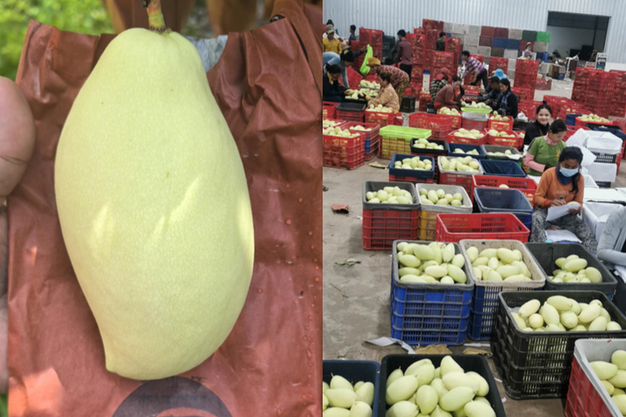 "俄罗斯是柬埔寨"高乐蜜"芒果的重要出口市场,当地消费者青睐该品种,对精品果需求尤为旺盛。目前订单已排至明年6月。由于正值雨季,客户对到货品质的验收要求提高,我们每天在果园监督,从采摘到采后各环节严格把控,以确保精品果率。"