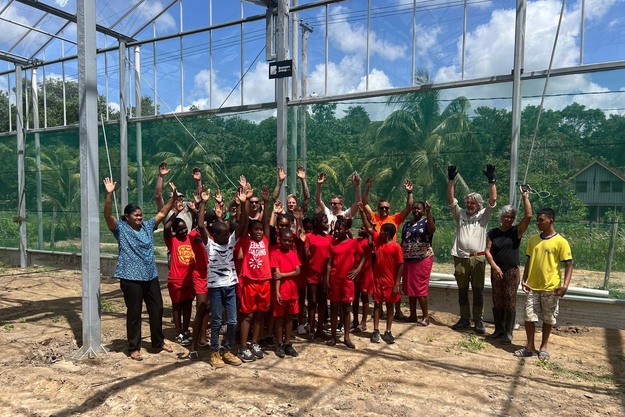 "当我买下这块土地时,这里已经杂草丛生,"Nesta Tjong A Hung 边说边在她的短裤上擦拭双手。Nesta 曾是一名牧师,现年 75 岁,25 年前,她用自己的积蓄为孩子们建起了一个安全的避风港:Mariahoeve。从最初简陋的家发展成现在的中心,这里不仅充满了爱和关怀,还盛产蔬菜。Nesta 认为,每个孩子每天都应该吃 10 汤匙蔬菜。苏里南的蔬菜价格昂贵,这是维持孩子们生活的最高成本。因此,Nesta 和丈夫 John 决定自己种植蔬菜。