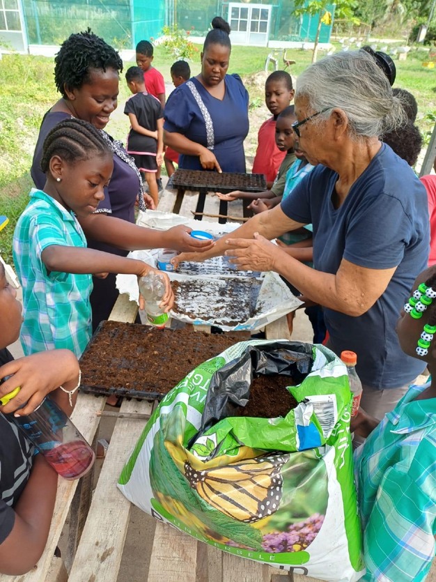 Nesta 和她的丈夫每天都在花园里,从八点到一点,又从四点到七点。她坚定地说:"只要我有能力,我就会工作。即使五年前成功战胜结肠癌,她的决心也丝毫未减。孩子们也参与其中。他们学习如何播种、除草和收割,还学习如何让 PET 瓶作为花盆焕发第二春。这样,他们不仅能学习园艺,还能在实践中学习可持续发展。" 她说道。