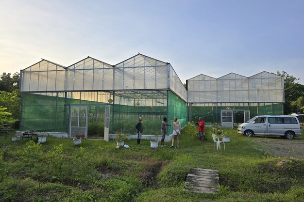 最初,Nesta 从事的是室外种植。她说:"在温室里,你可以避雨防虫,还能遮阳。于是,她建造了一个木制温室,但事实证明,平整的平台无法抵御热带雨水的侵袭。那些雨水直接把它压塌了。后来,我把屋顶做成了 V 形,以便更好地排水"。